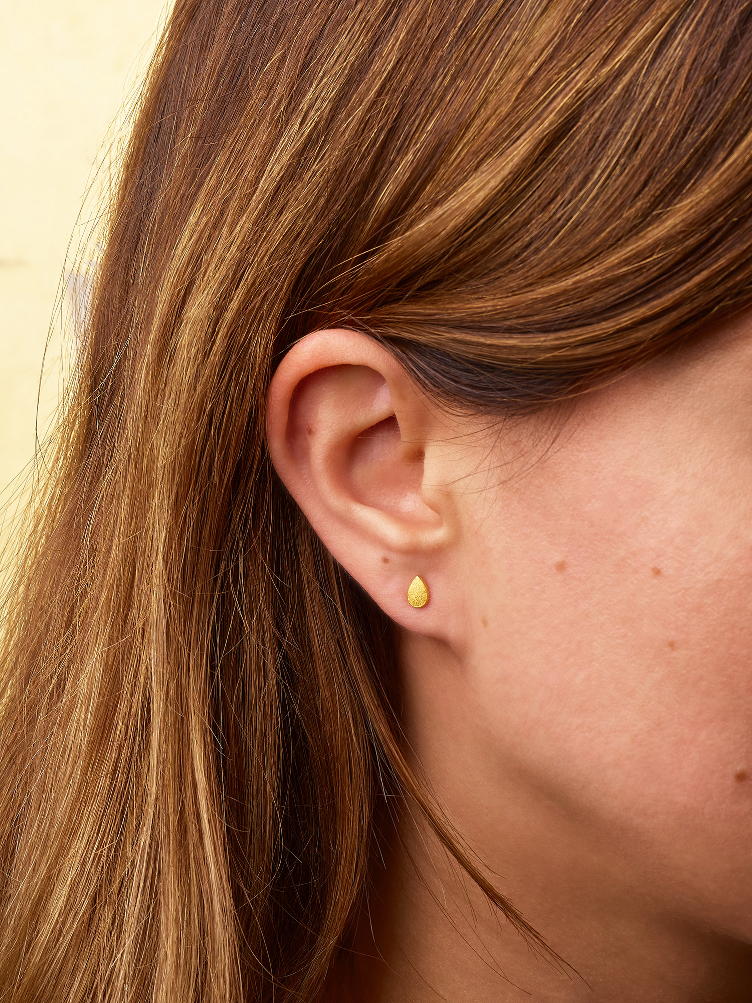 Mit den kleinen Tropfenohrsteckern Aquilis haben sie ein perfektes Lieblingsschmuckstück für jeden Tag. Mit der warmen, sonnigen BERND WOLF Oberfläche mit 24 Karat Goldplattierung strahlen die Ohrstecker und setzen seinen harmonischen, schönen Akzent.