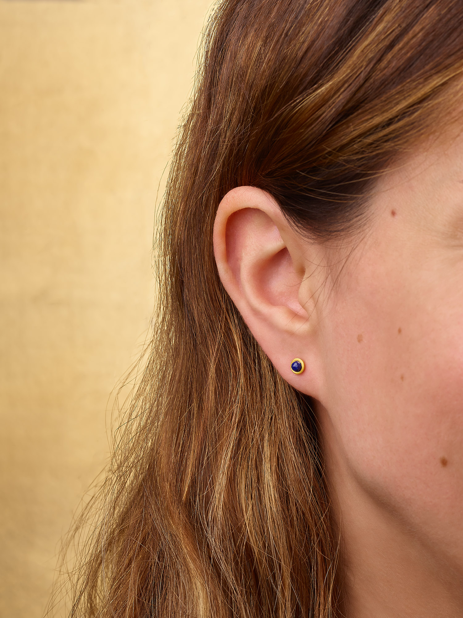 Faszinierend, dass ein so kleiner, fast winziger Ohrstecker eine so große Ausstrahlung haben kann! Der Ohrstecker Banni erreicht seine erstaunliche Wirkung durch das strahlende Blau der hochwertigen Lapislazuli Kugeln. Die Facetten des Edelsteins blitzen bei jeder Bewegung hell auf. Gefasst in einer Schale mit geschliffener Kante im warmen Goldton der für die BERND WOLF typischen Goldplattierung in 24-Karat-Premiumqualität verleiht der Ohrschmuck eine herrliche, feminine Eleganz.
