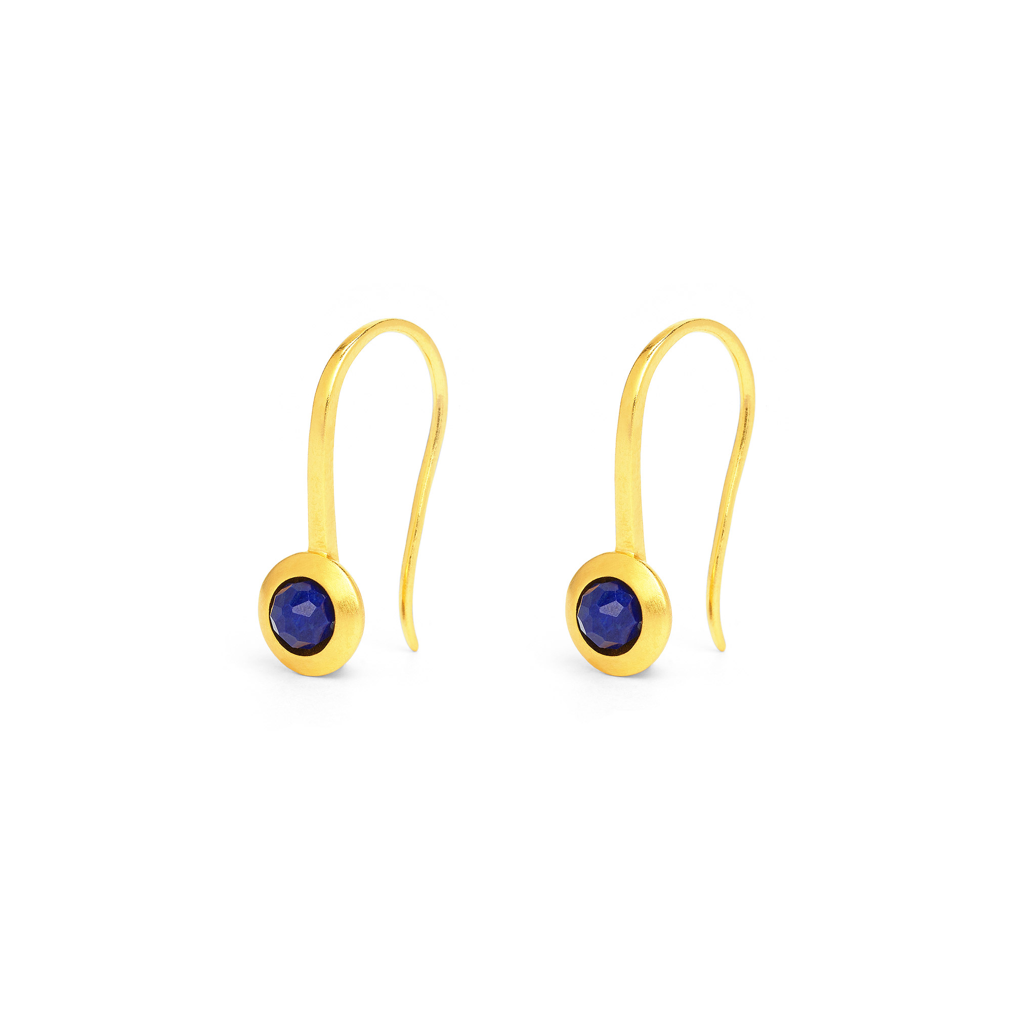 Schlicht und schön. Der Ohrhänger Banno ist das perfekte Schmuckstück für Frauen, die dezenten und aparten Ohrschmuck mögen. Eine kleine facettierte Lapislazuli Kugel leuchtet in royalem Blau in einem strichmattierten Rahmen mit sonnigem, warmem Goldton, der die BERND WOLF 24-Karat-Plattierung in Premiumqualität auszeichnet. Der Fischhaken unterstreicht die Leichtigkeit und den eleganten, luftigen Look.