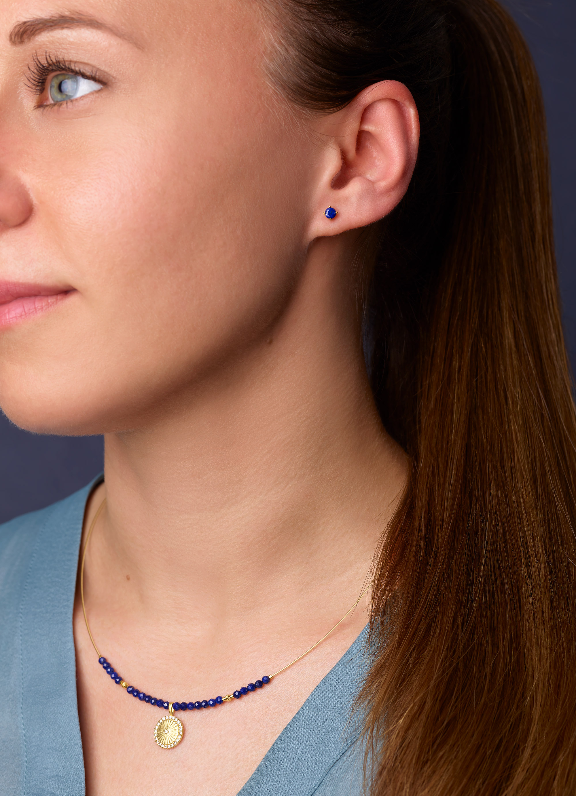 Der kostbare, ultramarinblaue Lapislazuli in der von BERND WOLF verarbeiteten exzellenten Qualität erinnert an einen leuchtenden Nachthimmel und harmoniert perfekt mit der 24-Karat-Goldplattierung der BERND Wolf Manufaktur. Weitere Infos zu den von BERND WOLF verwendeten Materialien im Lexikon der Edelsteine.