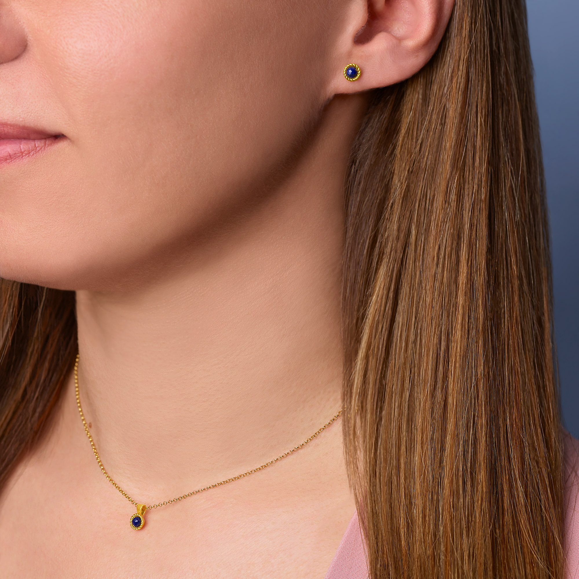 Der kostbare, ultramarinblaue Lapislazuli in der von BERND WOLF verarbeiteten exzellenten Qualität erinnert an einen leuchtenden Nachthimmel und harmoniert perfekt mit der 24-Karat-Goldplattierung der BERND Wolf Manufaktur. Weitere Infos zu den von BERND WOLF verwendeten Materialien im Lexikon der Edelsteine.