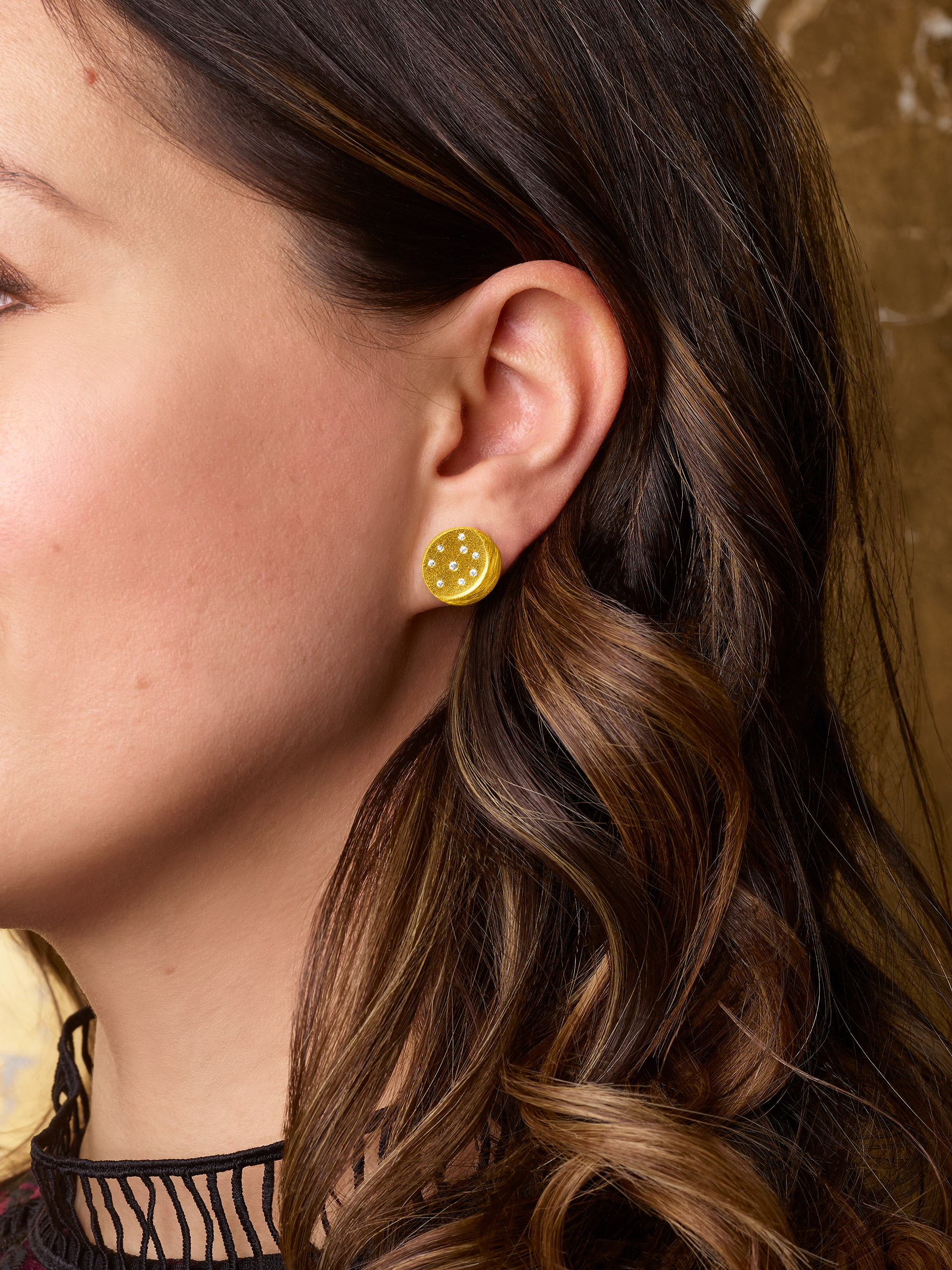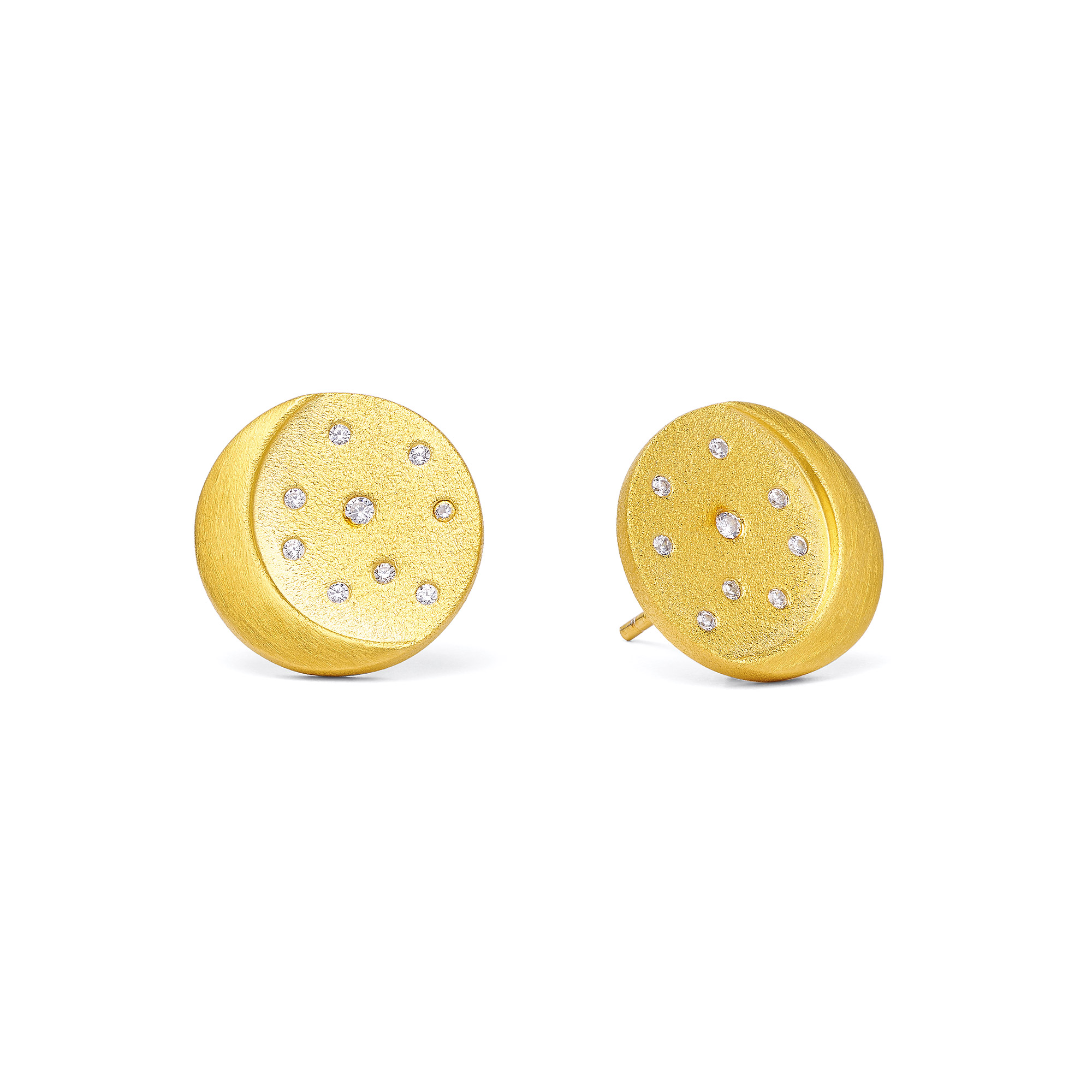 Bezaubernd strahlen die Ohrstecker Lunar am Ohr. Der Hintergrund ist versehen mit der für BERND WOLF typischen gebürsteten Oberfläche, in der zauberhaft funkelnde Zirkonia wie Sterne glitzern. Erhaben zeichnet sich der sanft geschliffene Sichelmond vor dem Hintergrund ab.