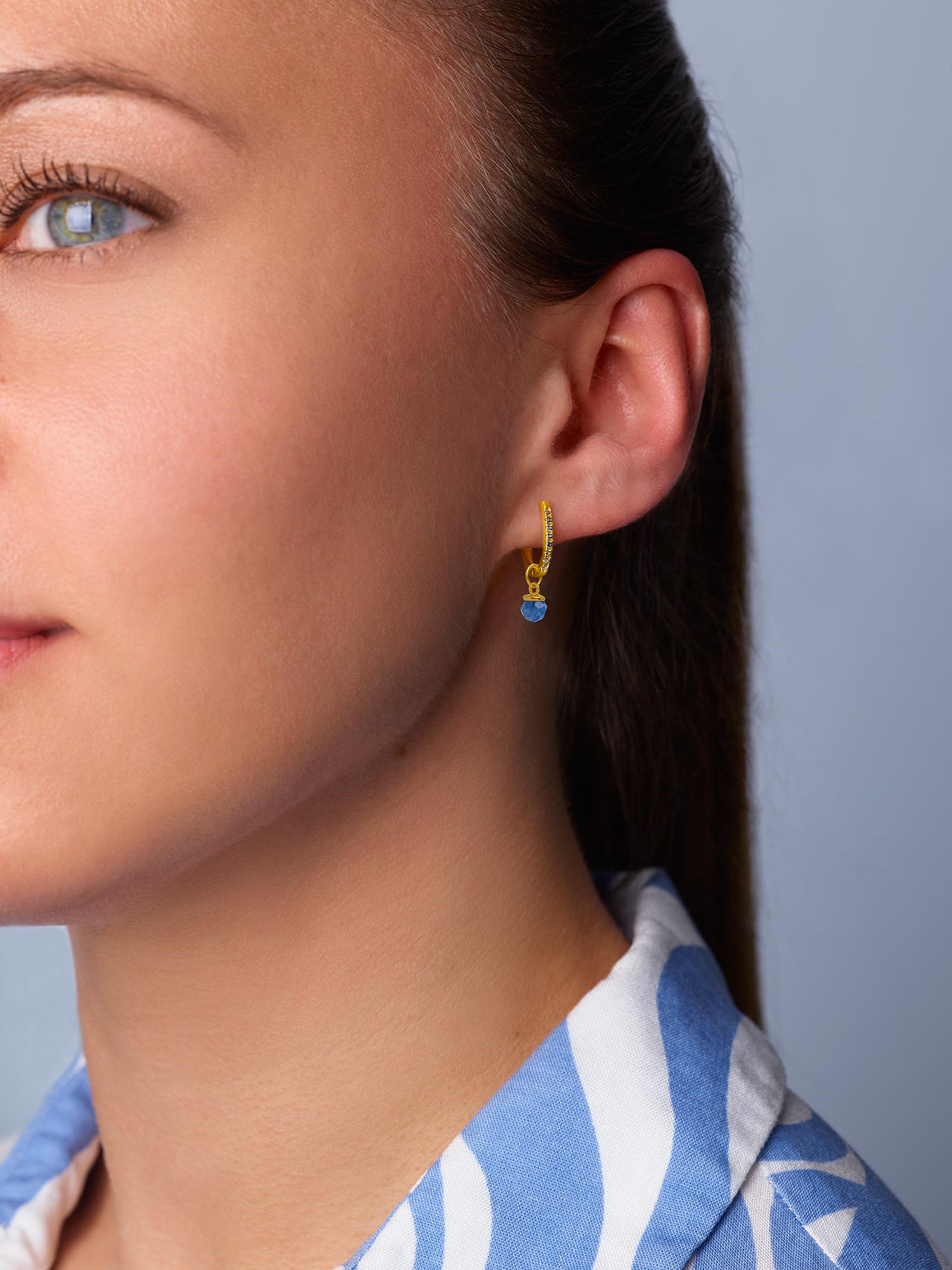 Dingdong: Der Name ist Programm, denn diese Creolen klopfen nicht an, sondern läuten ein neues Level im Creolen-Design ein. Sie umschmeicheln sanft das Ohrläppchen und sind auch eine Wohltat für das Auge: Die Kombination aus schwingender facettierter Kyanitkugel und kleinen eleganten Saphiren und dazu das formvollendete Design. Wie kann man da wiederstehen? Ein neues Lieblingsschmuckstück von BERND WOLF.