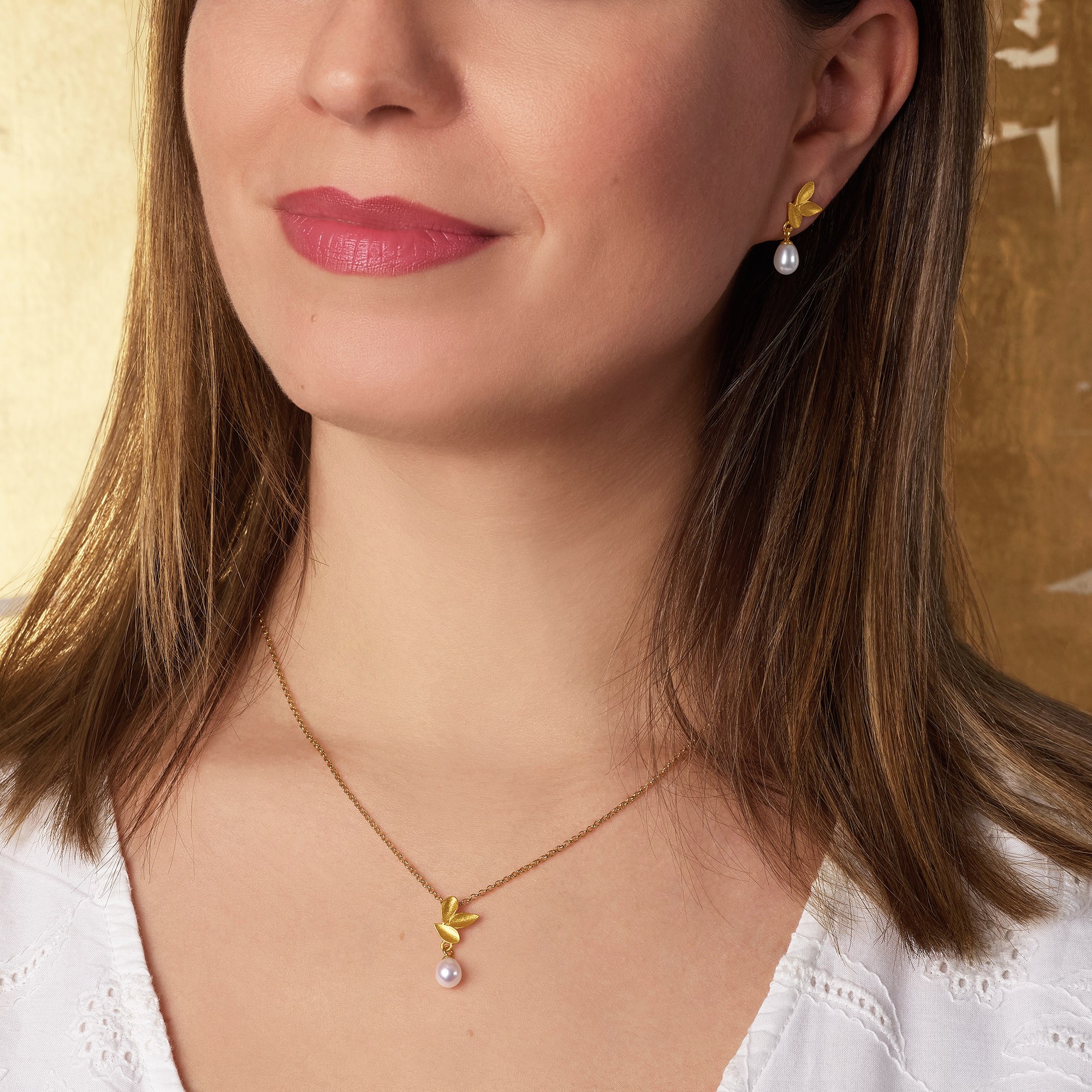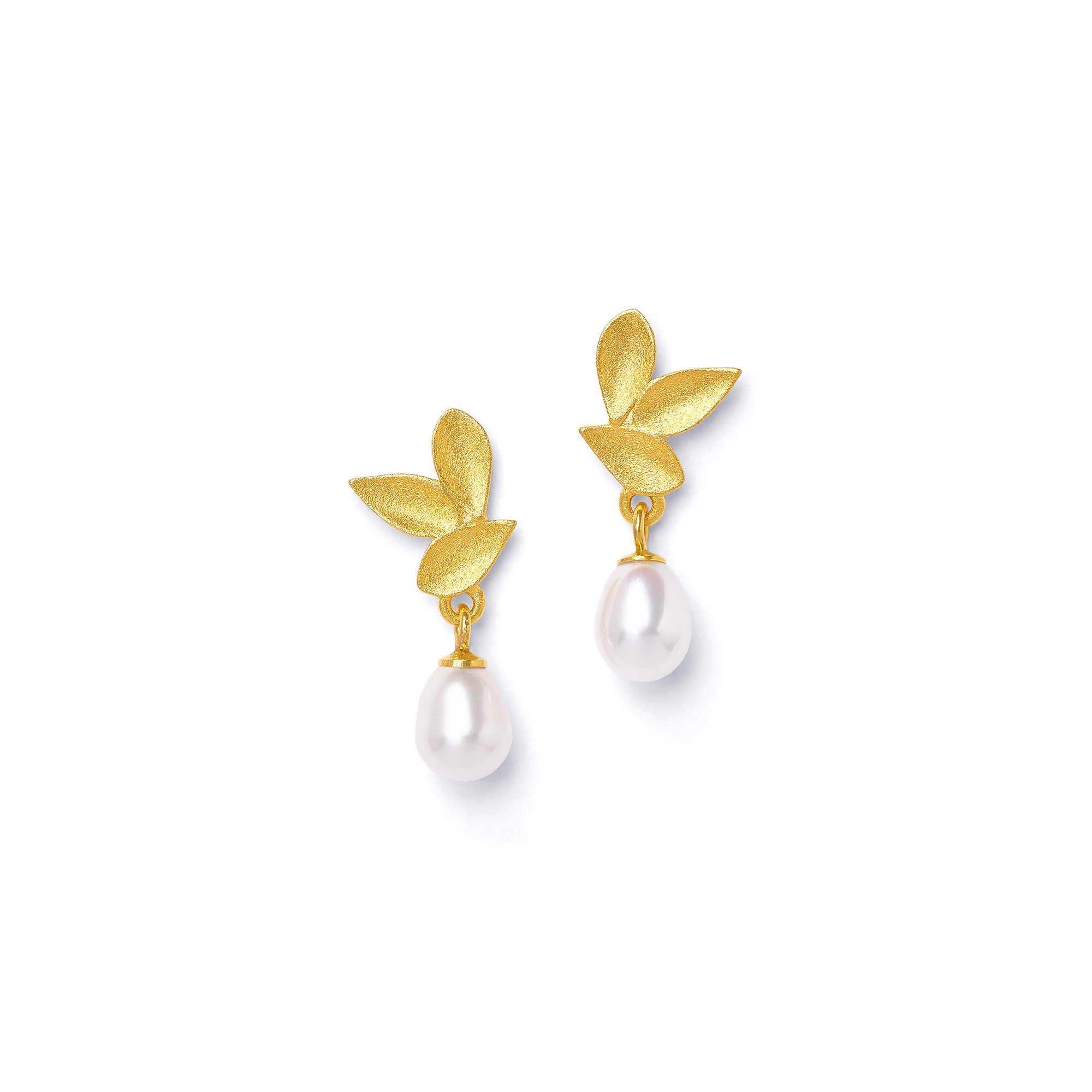 Modern und zugleich wunderbar zart und natürlich geformt: Die Ohrhänger Dricia sind ein stilvoller Hingucker. Die drei konkarv geformten Blättchen werden durch eine tropfenförmige Süßwasserperle schön abgerundet.