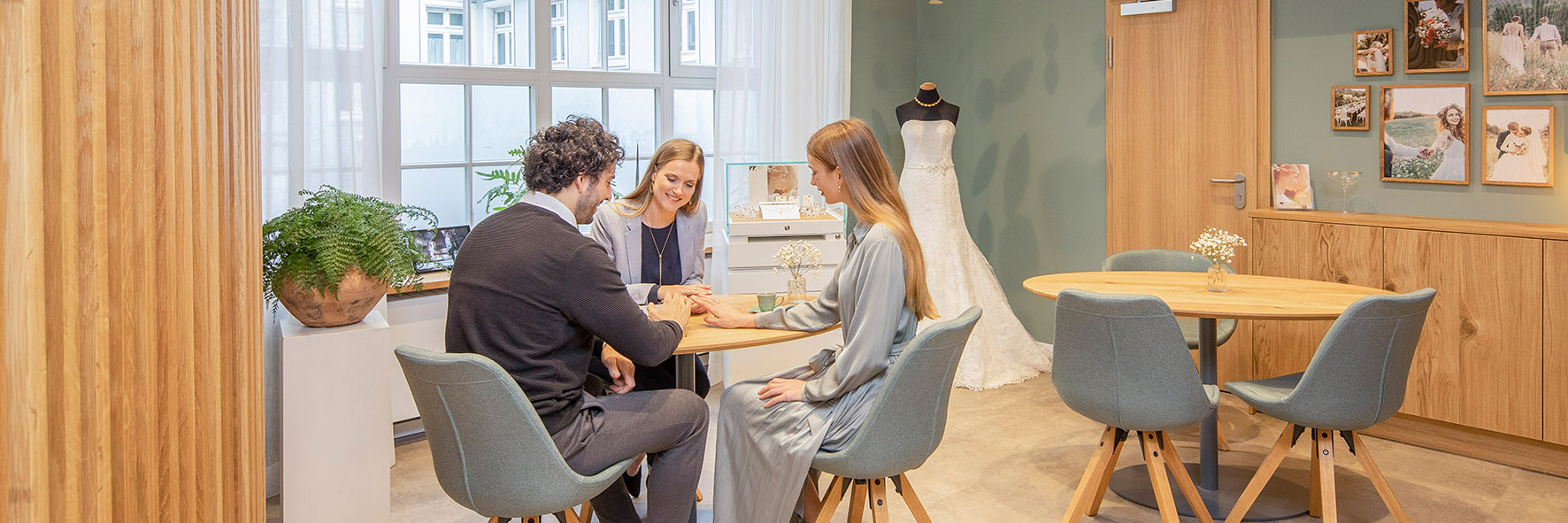 • Beratung unserer Kundinnen und Kunden bei der Entdeckung ihres neuen Lieblingsschmuckstücks oder der Trauringe fürs Leben