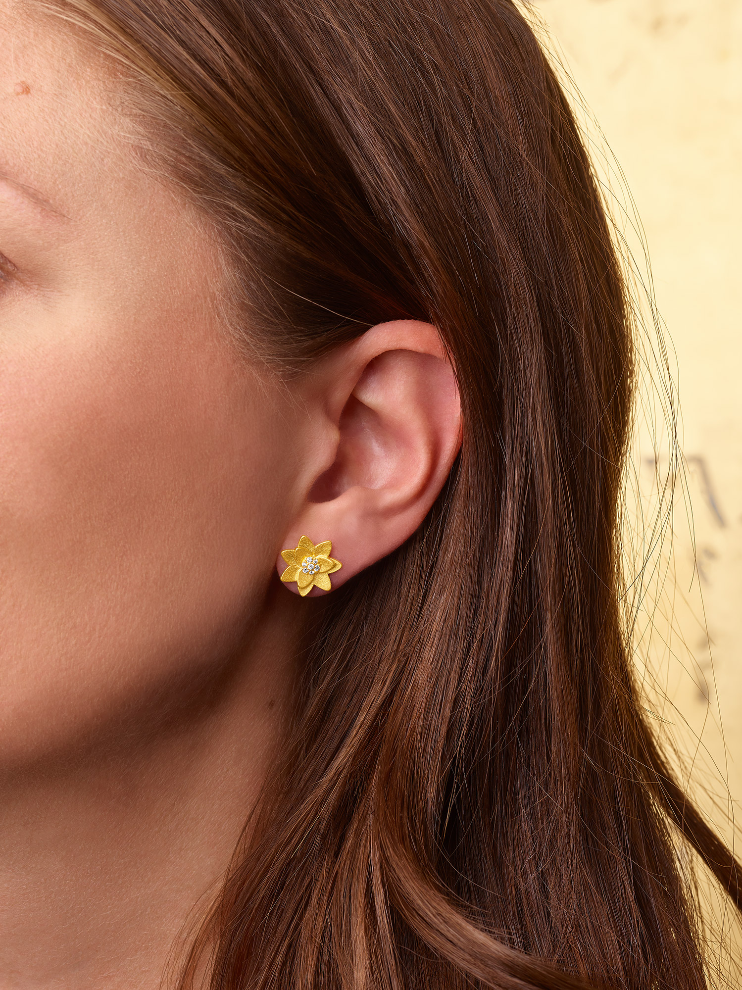 Bei den Ohrsteckern Hortensia bilden winzig kleine Zirkonia sieben Blütenstempel im Zentrum einer stilisierten, vollendet ausgewogenen Blume. Der perfekte Brillantschliff der Steine lässt sie strahlend weiß funkeln und gibt dem Ohrschmuck einen glamourösen Touch. Ein zeitloses Design, inspiriert vom Geist der Natur. Die Ohrstecker sind perfekte Begleiter für jeden Tag oder auch für besondere Anlässe. Zu den imposantesten und schönsten Blüten zählt die Hortensie, die Yvonne Wolf für ihre neue Schmuckblüte interpretiert hat. Bei den Schmuckstücken der Designlinie sind die markanten, leicht angewinkelten, stilisierten Blütenblätter um einen glitzernden Blütenstempel angeordnet. Die Hortensie ist ein Symbol für Schönheit, Hingabe und Dankbarkeit.