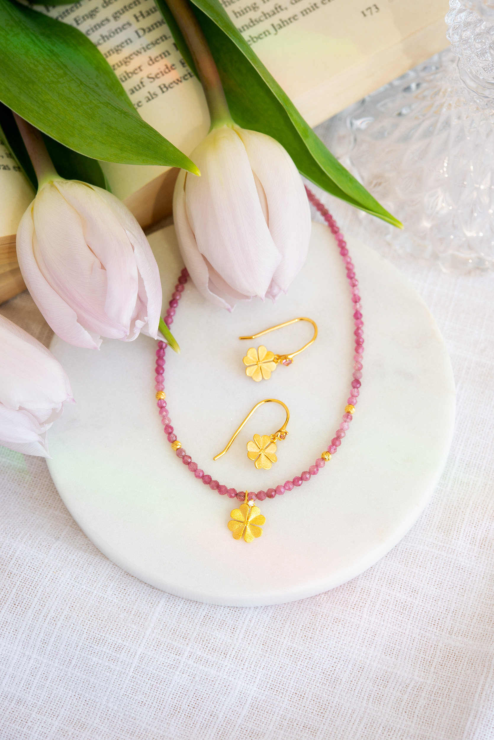 In unserer Manufaktur verarbeiten unsere Goldschmiede ausschließlich Perlen mit schönem Lüster, sowie Edelsteine und Korallen von besonderer Qualität. Diese werden in der Manufaktur einzeln von Hand ausgewählt. Viele Edelsteine wie auch Korallen bezaubern mit vielfältigen Einschlüssen und faszinierender Farbvielfalt und machen unsere Schmuckstücke so einzigartig. Die dabei vorhandenen Farbschwankungen zeichnen sie als besondere Naturprodukte aus. So entstehen harmonische, spannungsvolle Kreationen mit natürlichem Charme, die Ihre schöne Ausstrahlung perfekt unterstreichen. Zum Lexikon der Edelsteine
