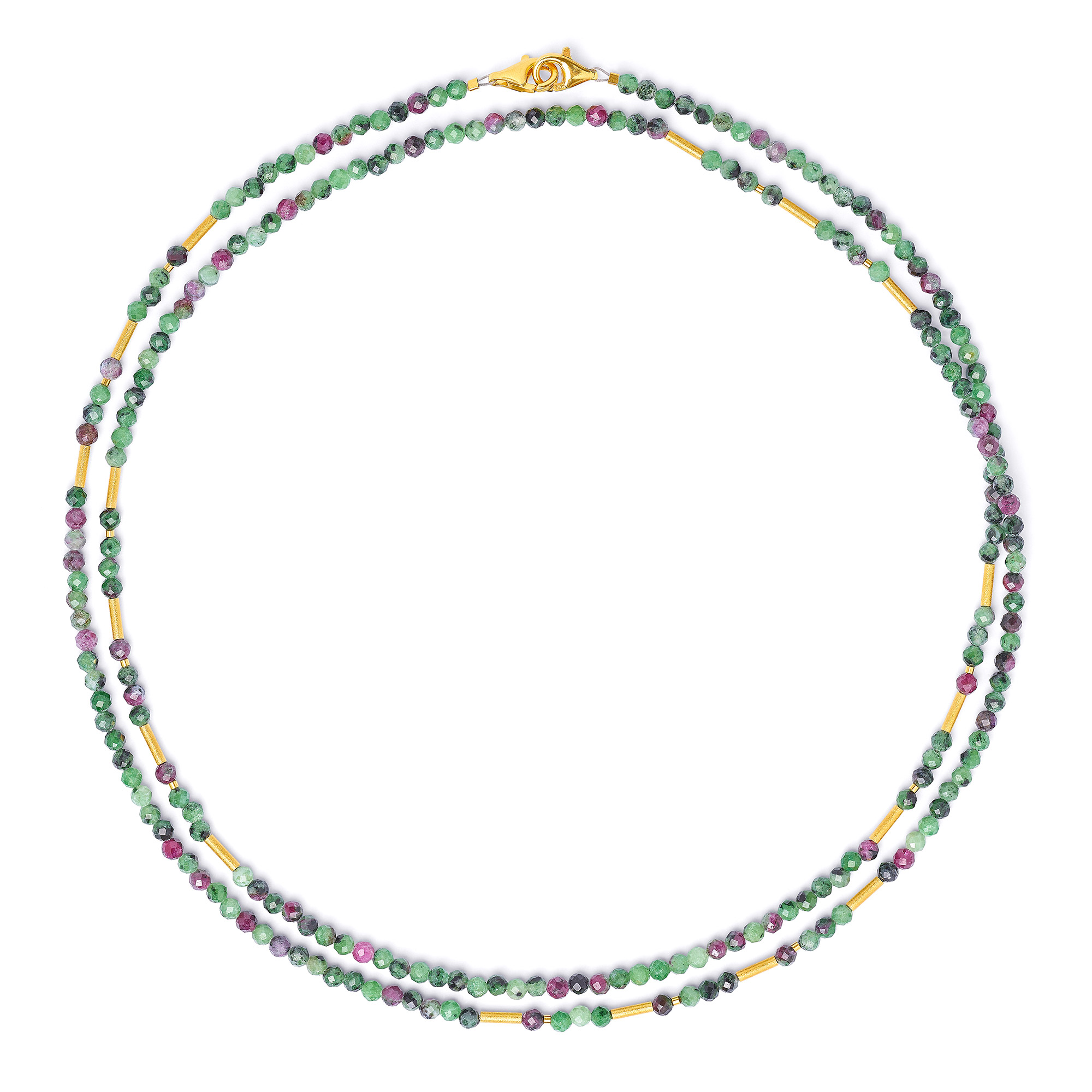 Der edle violettrot leuchtende Rubin in Verbindung mit seinem eleganten, grünen Muttergestein Zoisit lässt nicht nur die Herzen von Edelsteinliebhabern höher schlagen. Der seltene Edelstein, der auch den Namen Anyolith trägt, wurde bisher ausschließlich in Tansania gefunden. Weitere Infos zu den von BERND WOLF verwendeten Materialien im Lexikon der Edelsteine.