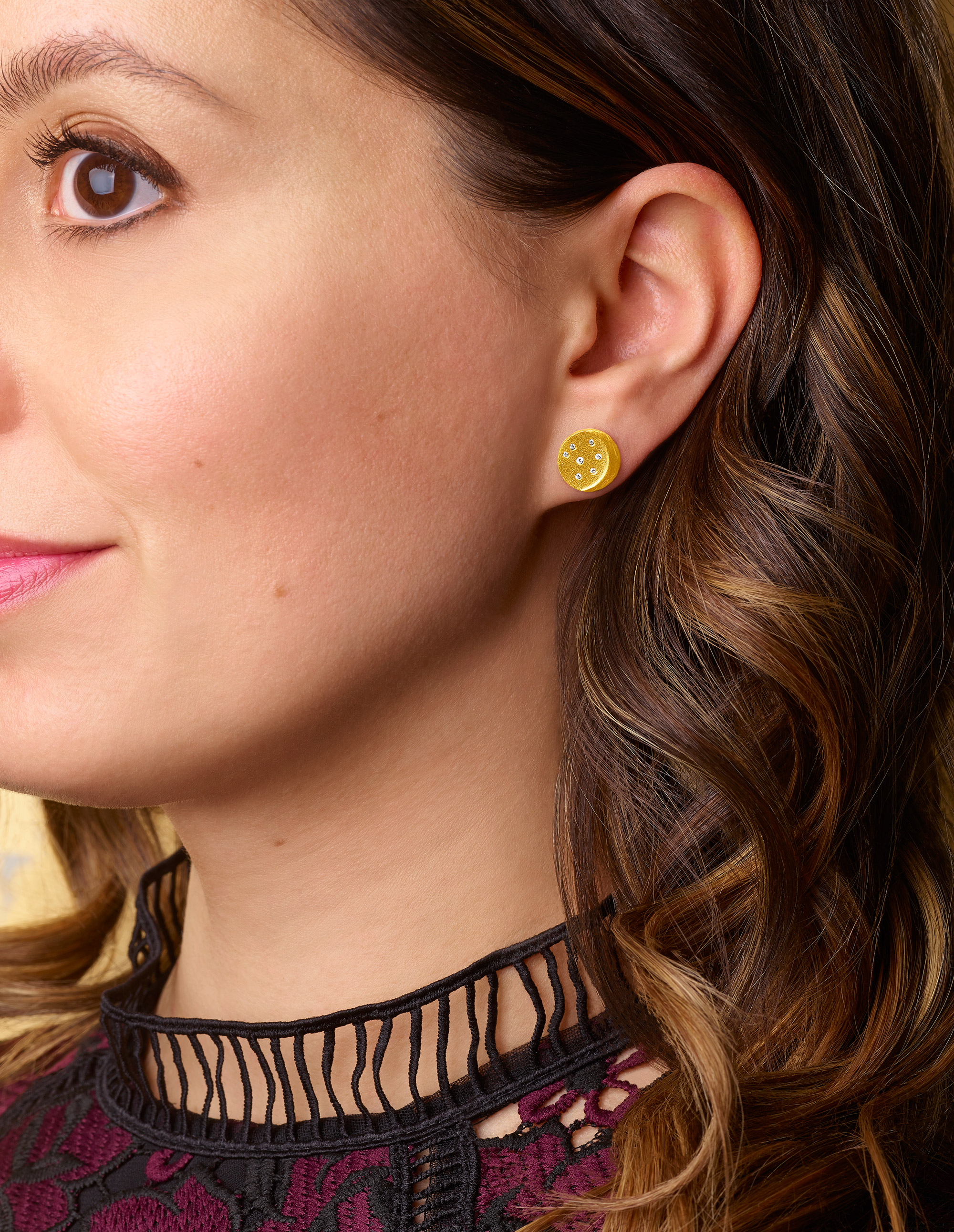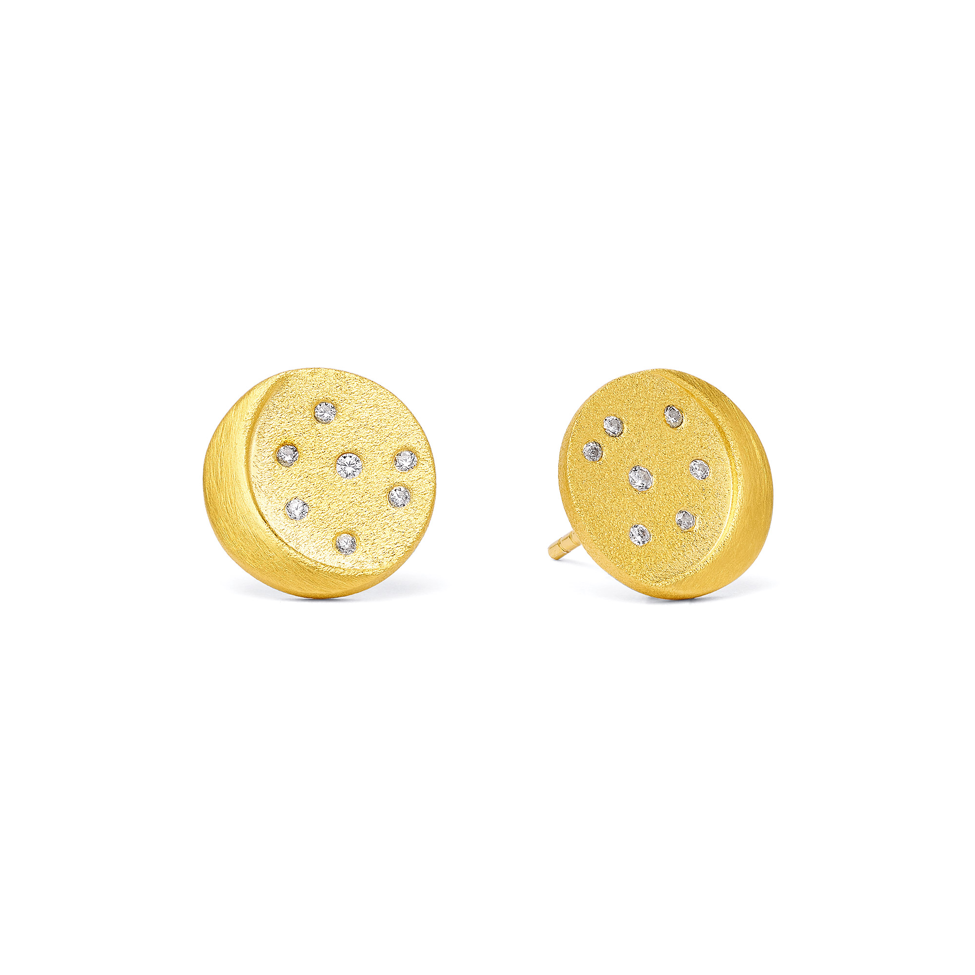 Bezaubernd strahlen die Ohrstecker Lunar am Ohr. Der Hintergrund ist versehen mit der für BERND WOLF typischen gebürsteten Oberfläche, in der zauberhaft funkelnde Zirkonia wie Sterne glitzern. Erhaben zeichnet sich der sanft geschliffene Sichelmond vor dem Hintergrund ab.