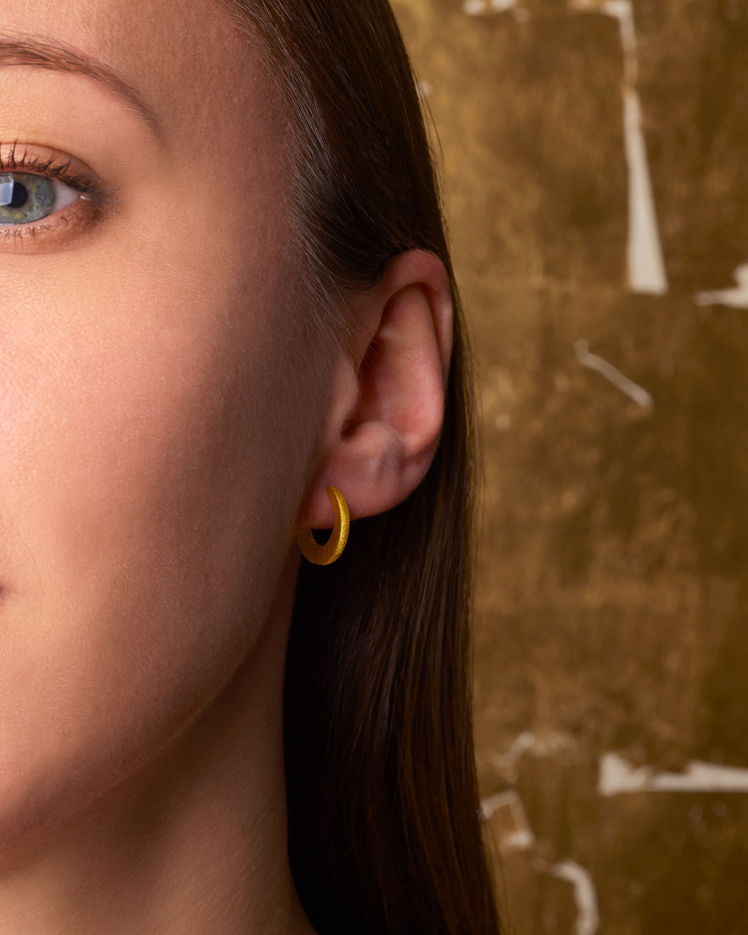 Wie ein Sichelmond umschließen die Creolen Medialunico das Ohrläppchen. Bereits vor mehr als 6000 Jahren trugen Frauen Ohrschmuck in Form eines Sichelmondes als Symbol für Weiblichkeit, Fruchtbarkeit und Mütterlichkeit. Die Creolen sind sehr angenehm zu tragen und unterstreichen die feminine Austrahlung.