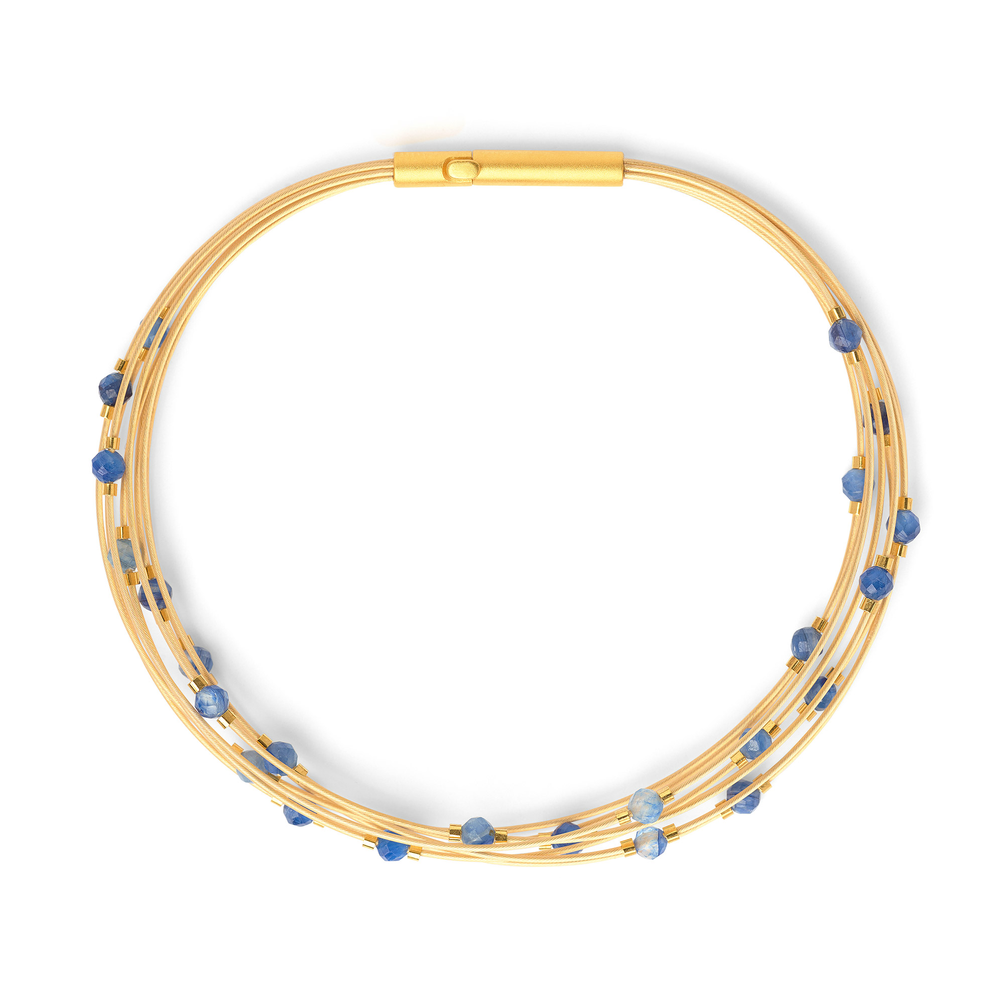 Der Kyanit erhielt seinen Namen vom griechischen Begriff Kynos (dunkelblau). In Deutschland ist der Stein auch unter dem Namen Disthen („zwei Härten“) bekannt. Der Kyanit kommt in Brasilien, Indien, Nepal, Kenia, Russland, Serbien, USA und im Schweizer Tessin vor. Der in bester Qualität von BERND WOLF verarbeitete Kyanit stammt aus Brasilien. Weitere Infos zu den von BERND WOLF verwendeten Materialien im Lexikon der Edelsteine