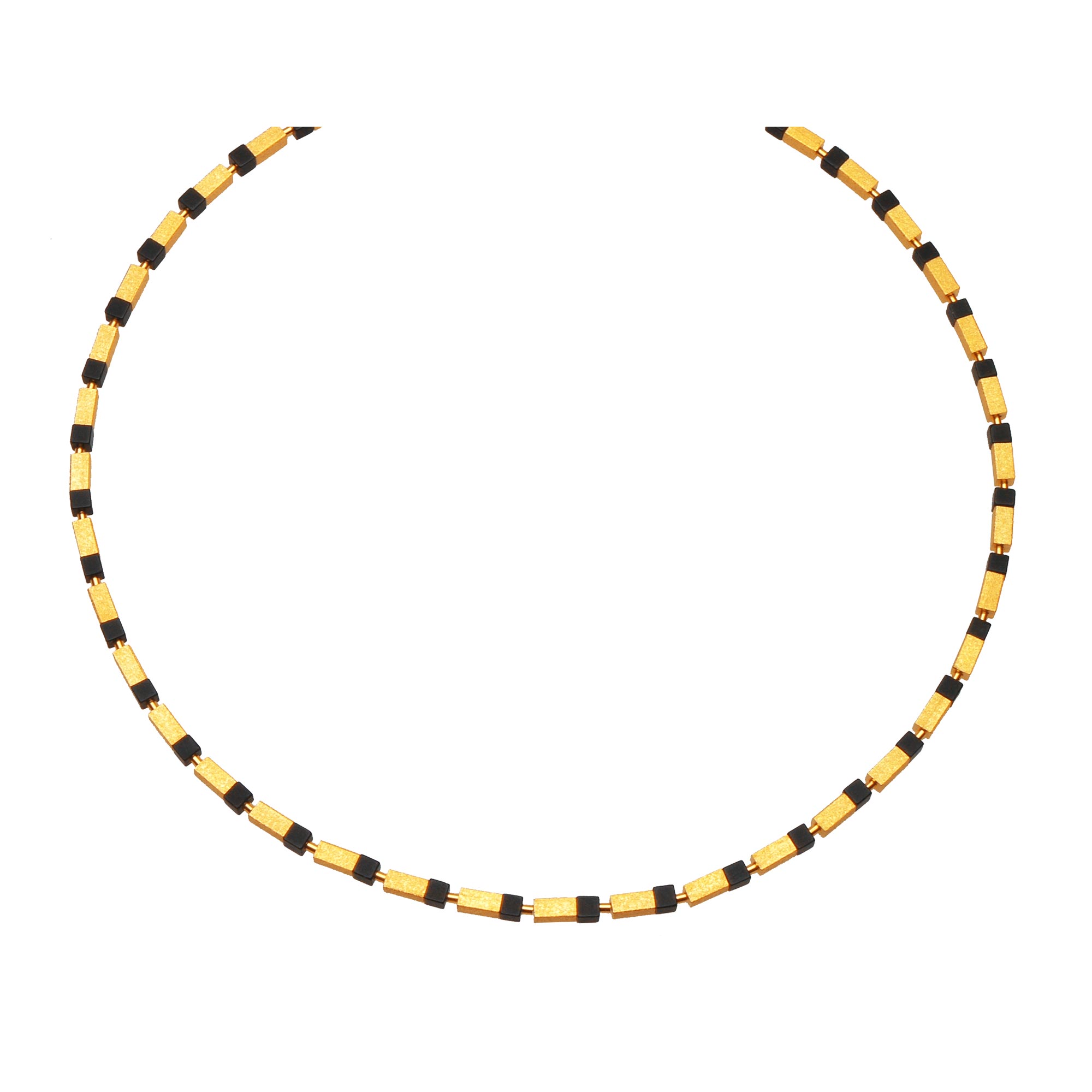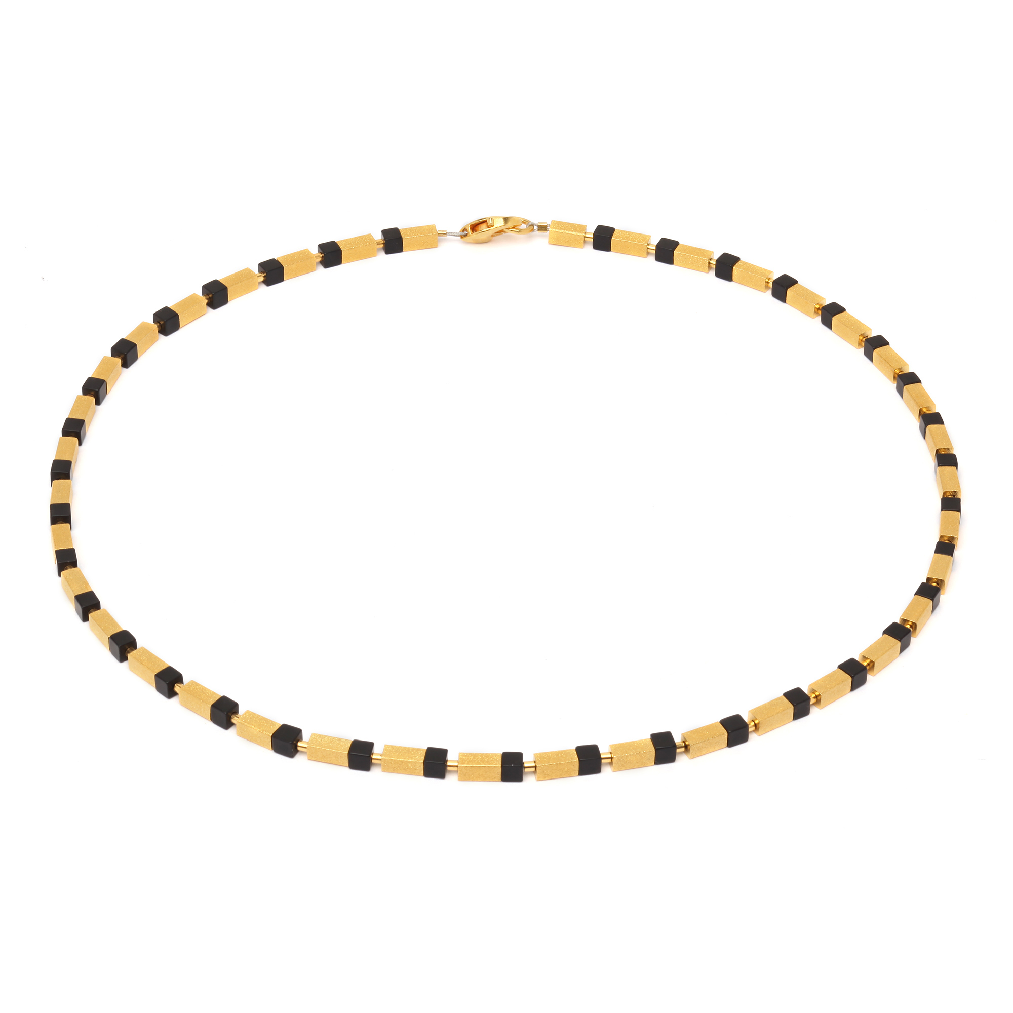 Die einzigartige tiefschwarze Farbe des Onyx wird als edel und wertvoll empfunden. Er passt perfekt zu einem dezenten und eleganten Look. Weitere Infos zu den von BERND WOLF verwendeten Materialien im Lexikon der Edelsteine.