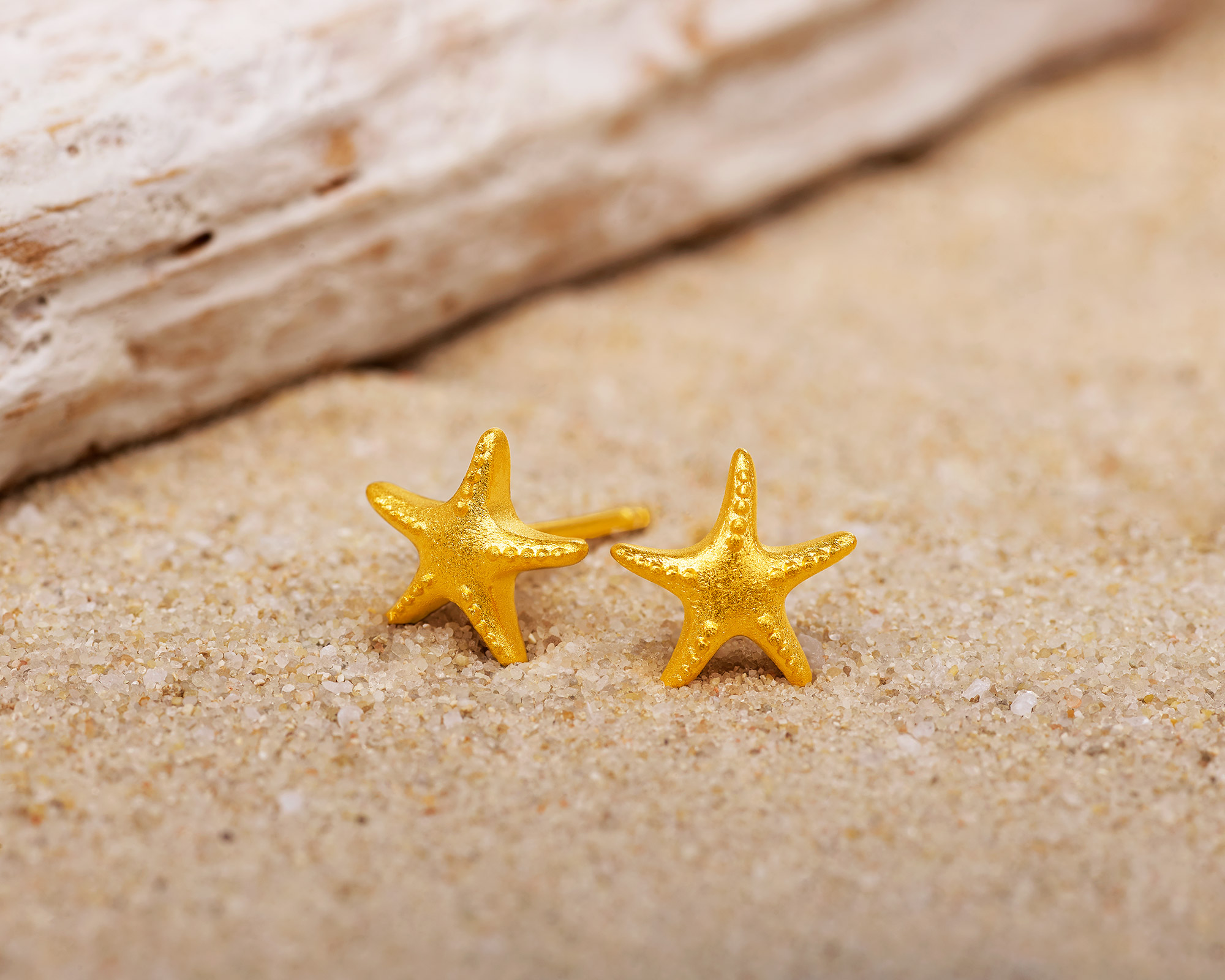 Die Seastar Ohrstecker schmeicheln mit ihrer natürlichen Form und zarter Detailliertheit dem Ohr. Die 24-Karat Goldplattierung in Premium Qualität lässt diesen maritimen Ohrschmuck strahlen. Mit Delfinen, Seesternen und Muscheln bezaubert die neue maritime Kollektion von BERND WOLF. Vom kleinen Anhänger mit und ohne funkelndem Zirkonia bis zum großen frei schwingenden Eyecatcher bietet die Kollektion für alle LiebhaberInnen von maritimen Erlebnissen an schönen Stränden und auf See zauberhafte Schmuckstücke.
