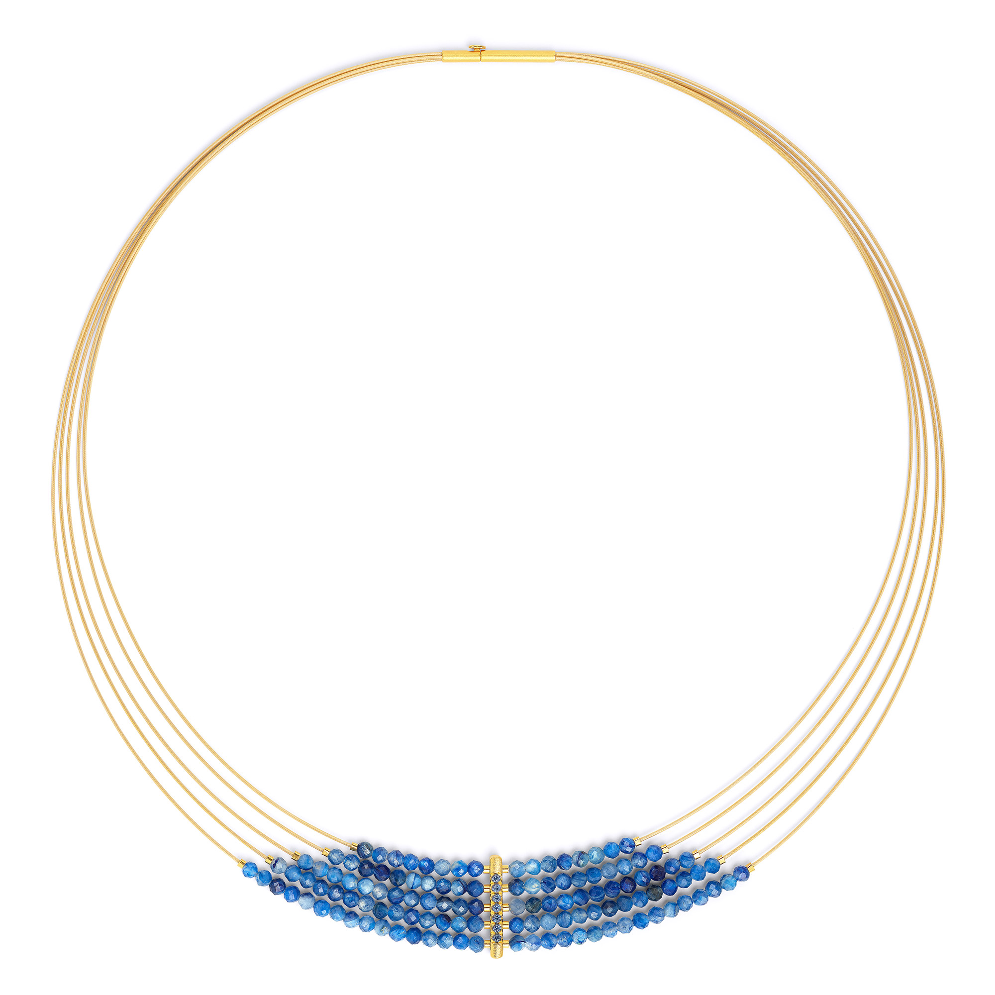 In perfekter Symmetrie wird der schlanke Mittelsteg des Colliers Sentra mit funkelndem, edlem Saphir von facettierten Kyanitkugeln in herrlichen, leuchtenden Blautönen flankiert. Ein Collier der Extraklasse, das nicht nur im Theater, beim Opernbesuch und Dinner perfekt schmückt. Ein einzigartiges Schmuckstück mit außergewöhnlicher Ausstrahlung.