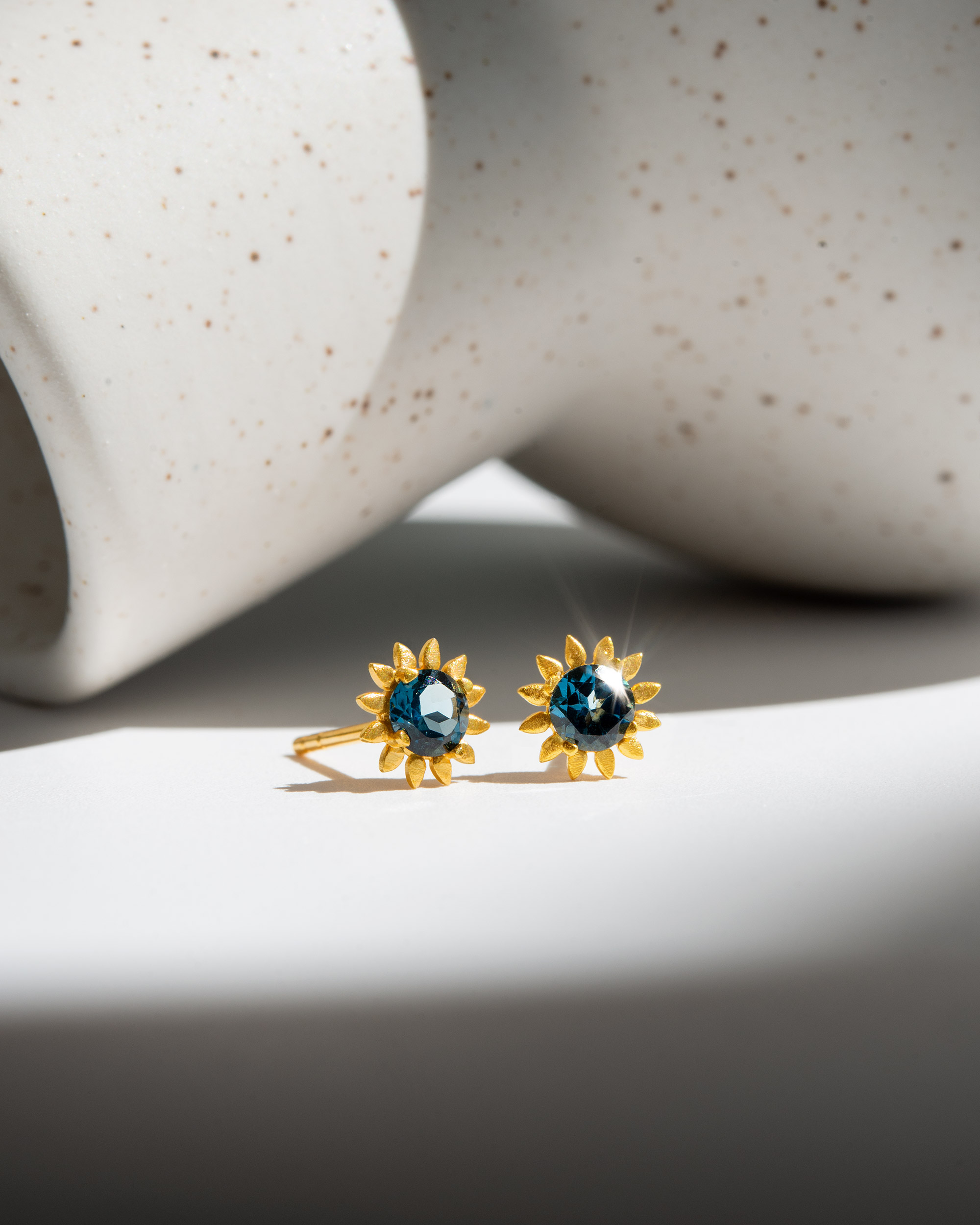 Die eleganten Ohrstecker Soleila aus der Aurum 585 Soleil Kollektion verzaubern mit London Blue Topas im Brilliantschliff. Diese werden von kleinen, strichmattierten Sonnenstrahlen kunstvoll umrahmt und sind ein Hingucker der Extraklasse. Die Sonne zum Greifen nah: Mit der Aurum 585 Soleil Kollektion präsentiert BERND WOLF neue leuchtende Blickfänge. Die Sonne, ewige Quelle des Lebens, ist schon lange eine Muse für neue Kreation von Bernd Wolf. Der Clou der Aurum 585 Kollektion liegt im Kern, denn jedes Schmuckstück besteht aus massivem Gold 585 und wird mit der für BERND WOLF typischen 24-Karat-Goldplattierung in Premiumqualität veredelt.