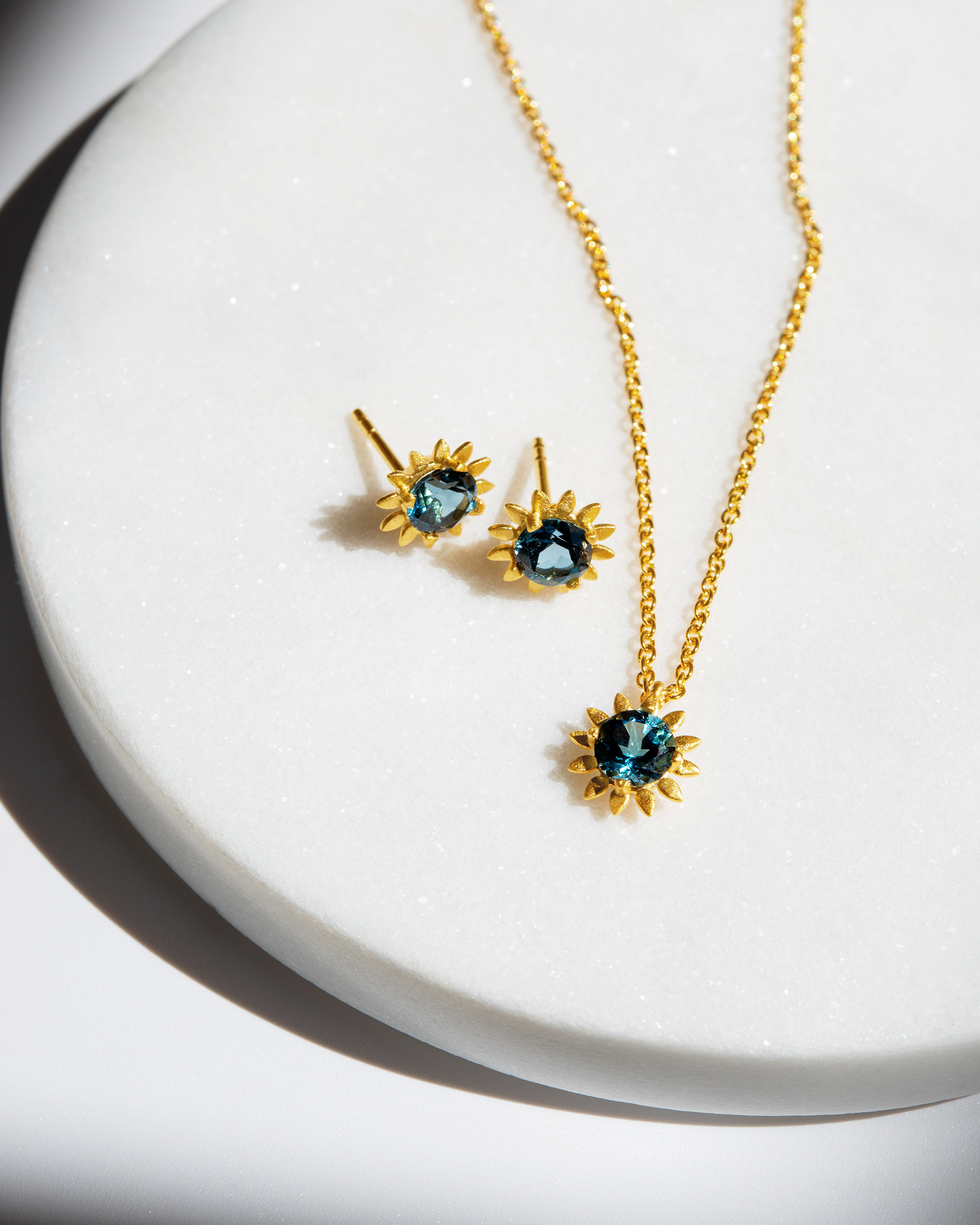 In der BERND WOLF Manufaktur verarbeiten wir London Blue Topas: Ein leuchtendes, grünstichiges Blau, dass durch den Facettenschliff besonders gut zur Geltung kommt.