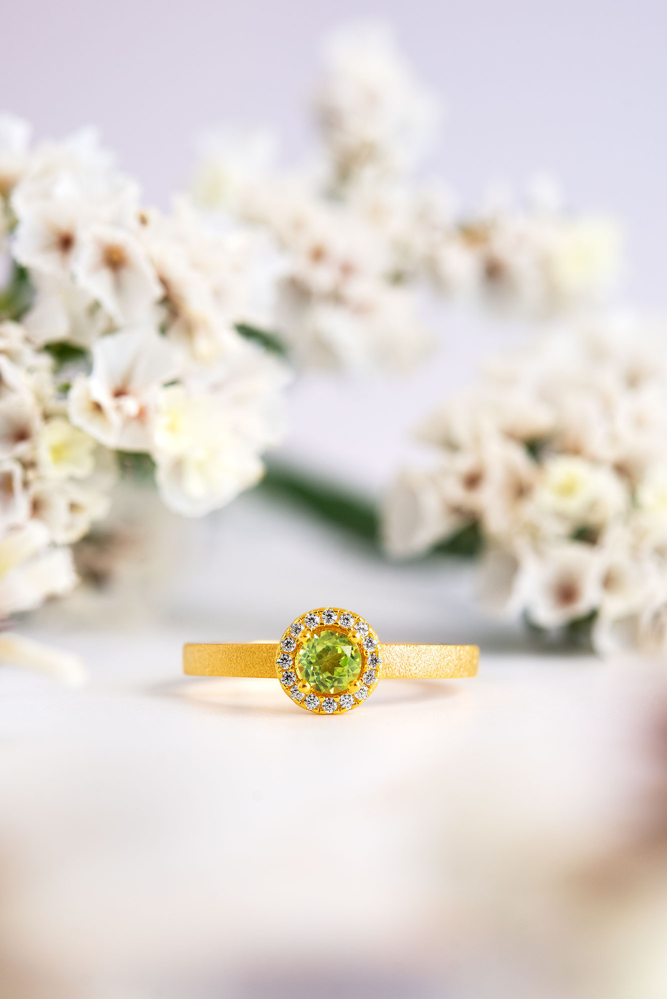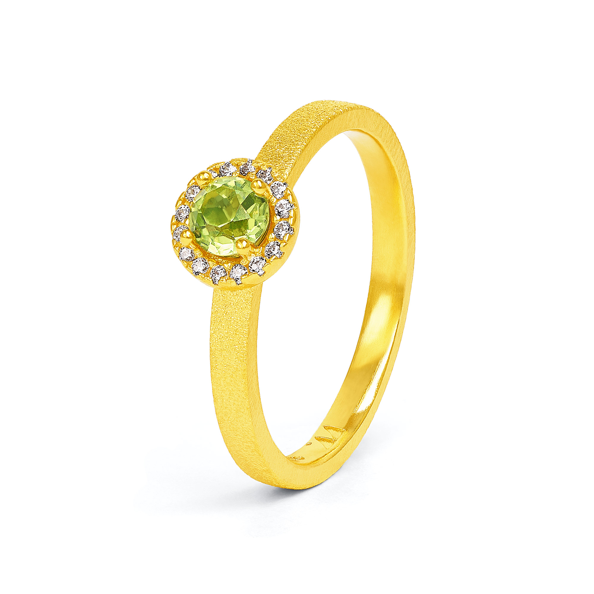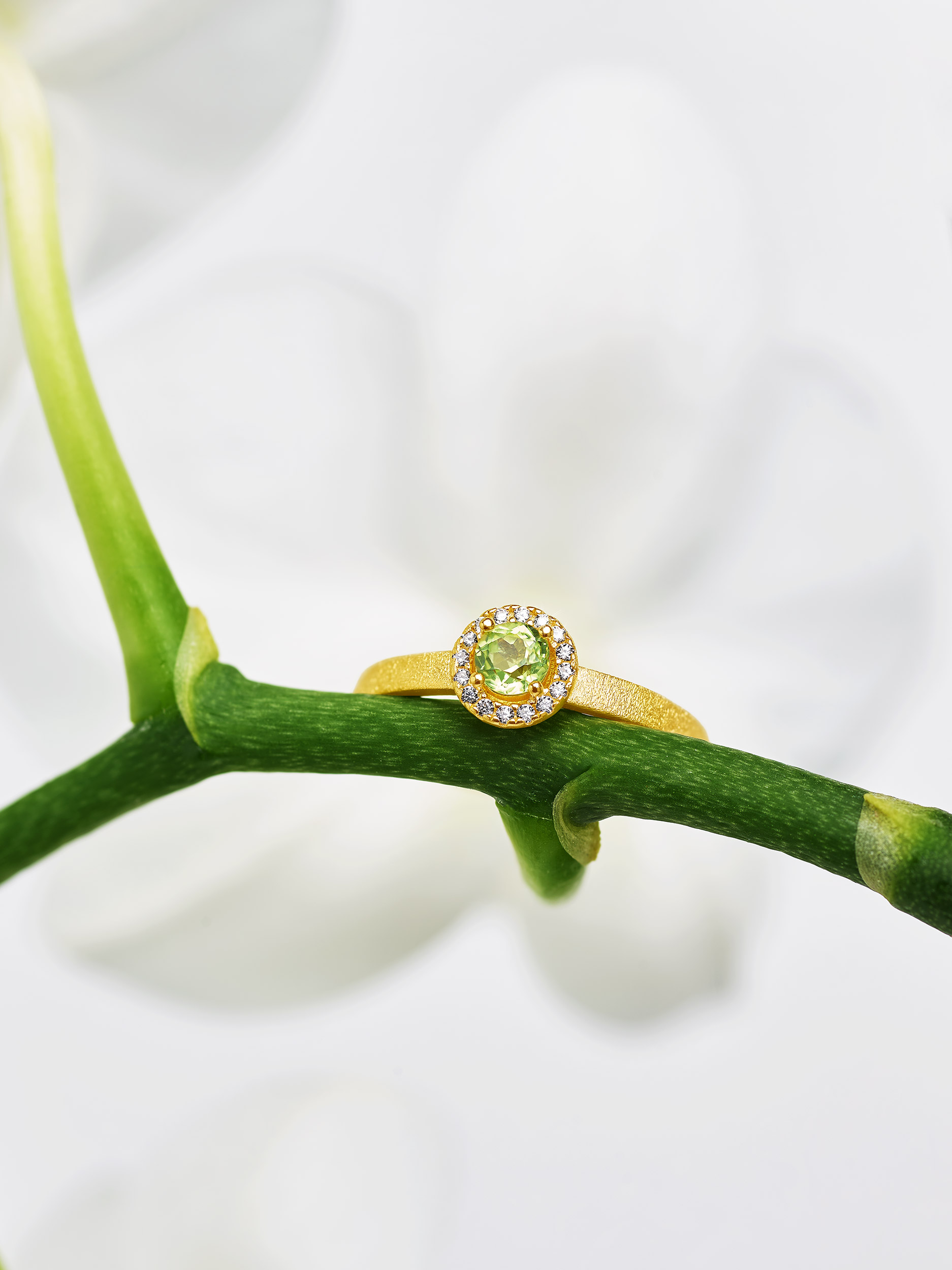 Der Peridot begeistert mit seinem leuchtend hellgrünen Farbton und seiner klaren Transparenz – eine der reinsten Formen des Edelsteins Olivin. Sein frisches, lebendiges Grün und die brillante Lichtbrechung der facettierten Steine verleihen ihm eine unvergleichliche Strahlkraft und machen ihn zu einem wahren Blickfang.