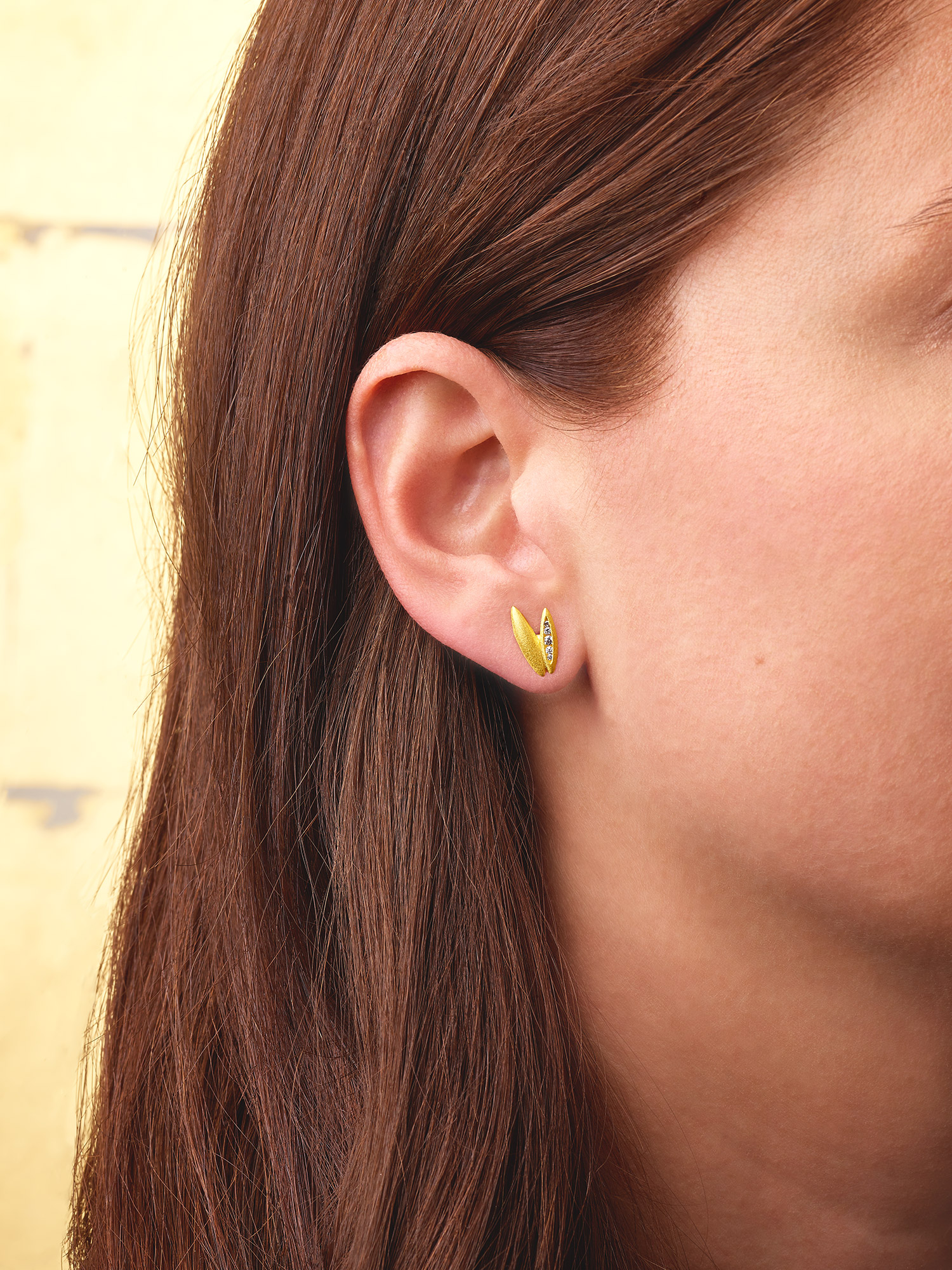 Sonnig strahlen die kleinen Ohrstecker Venduettas. In navetteförmiger Kanalfassung glitzern kleine Zirkonia. Sie sind für alle Liebhaberinnen der Designfamilie Veniza ein " Must have".
