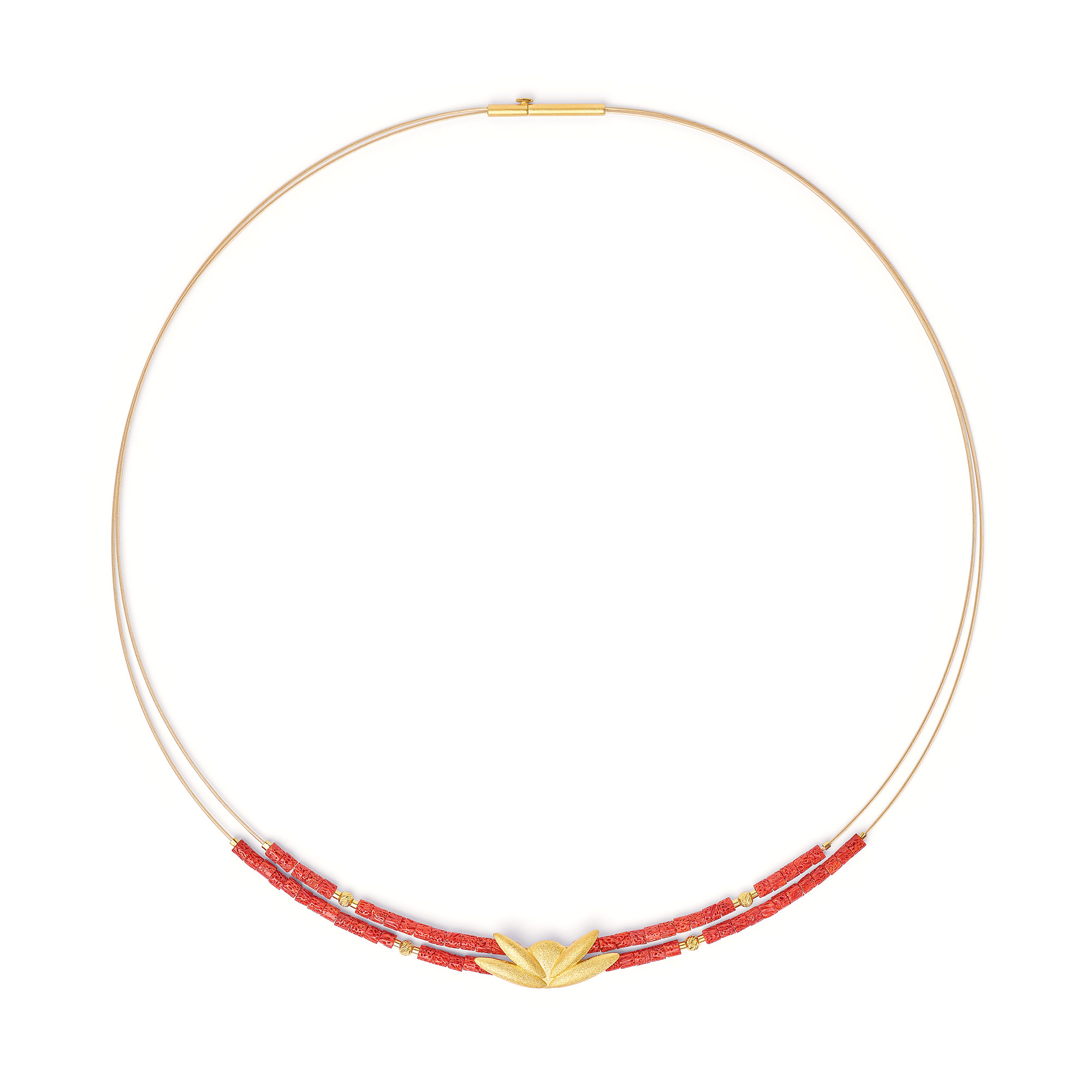 Die von BERND WOLF verarbeitete kostbare Wurzelkoralle in bester Qualität ist ein besonderer Blickfang. Die schnell wachsende Koralle steht nicht unter Naturschutz, nur ein winziger Anteil der Vorkommen wird zu Schmuck verarbeitet. Durch unterschiedlichste Maserung wird jedes Korallenschmuckstück von BERND WOLF zu einer einzigartigen Kostbarkeit. Weitere Infos zu den von BERND WOLF verwendeten Materialien im Lexikon der Edelsteine.