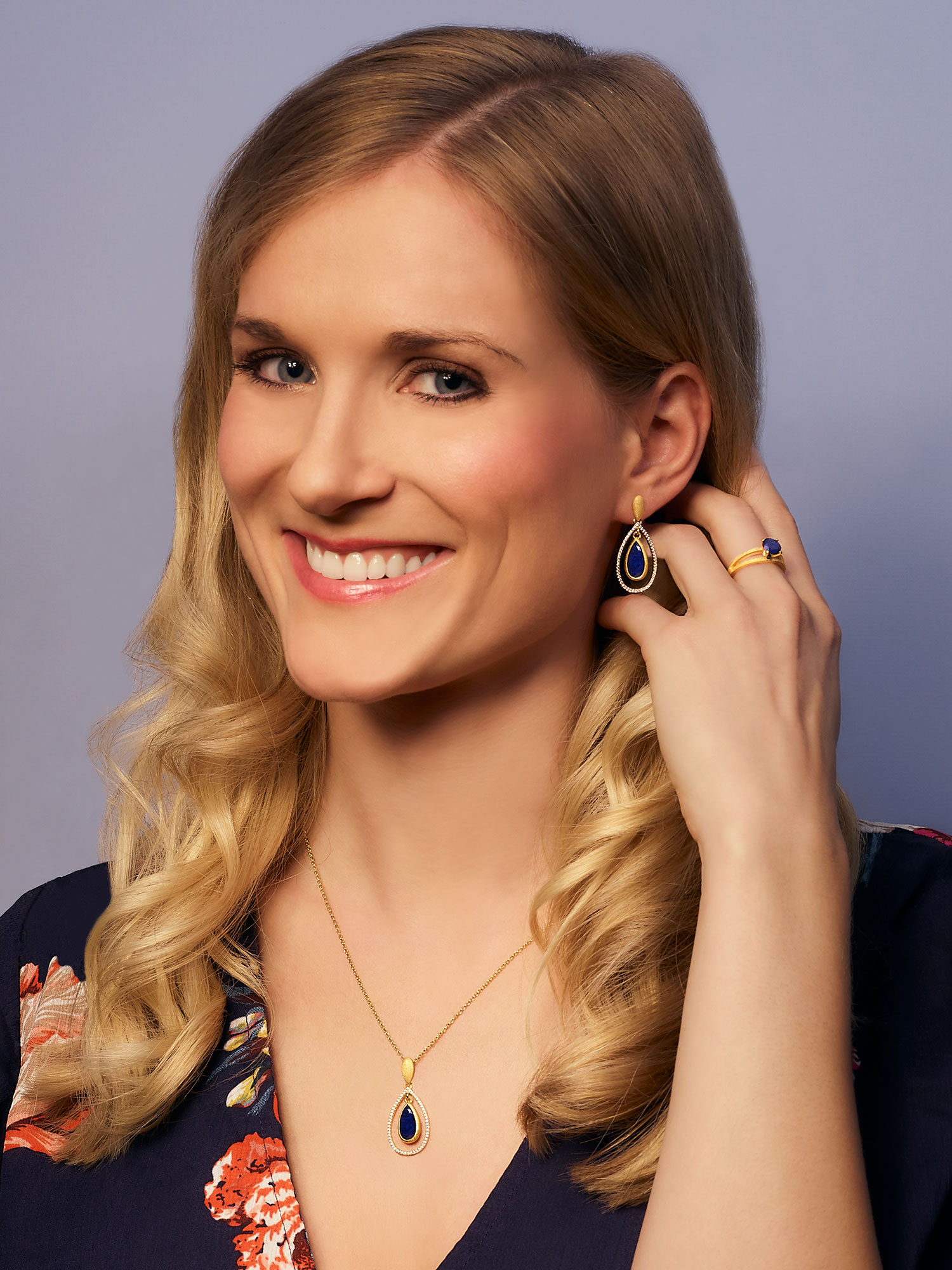 Der Ohrschmuck Venezia ist ein wahrer Eyecatcher, der die Farbe Blau besonders stilvoll in Szene setzt, mit Lapislazuli in wunderbarer Qualität und zauberhaften Facetten. Die kleine Schwester des auffällig trendigen Ohrhängers Venezo, lässt sich ebenso mit perfekt zu hochgeschlossenen Kleidern und Oberteilen kombinieren und verleiht der Trägerin romantische Eleganz. Die beiden Rahmen mit Zirkonia und dem mit höchster Präzision facettierten Lapislazuli sind beweglich und tanzen elegant am Ohr. Die Kette Venzia ergänzt die Ohrhänger zu einem außergewöhnlichen Set. Wasser als Lebenselixier und Quell der Lebendigkeit ist das Leitmotiv der BERND WOLF Designlinie Aqua. Symbolisiert wird dies durch strahlend leuchtende Tropfen, die uns mit dem edlen Glanz in ihren Bann ziehen.