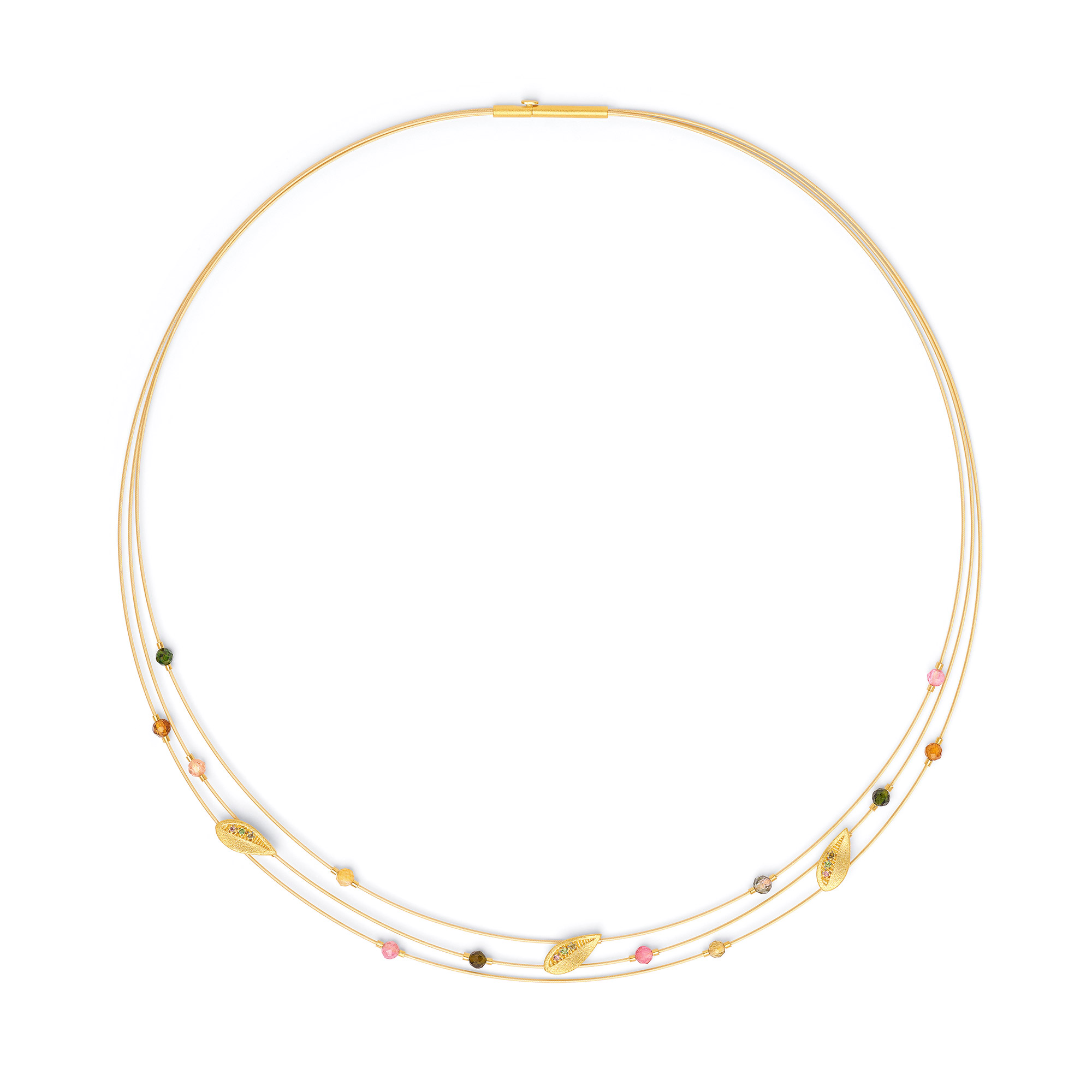 Mit der Farbenvielfalt, die an einen Regenbogen erinnert, begeistert der Turmalin mit seinen Farbtönen, die von Violett über zarten Grüntöne bis hin zu hellen Pink und Rottönen gehen. Die von BERND WOLF verarbeiteten Turmaline sind von besonders schöner, oft klarer und strahlender Qualität. Weitere Infos zu den von BERND WOLF verwendeten Materialien im Lexikon der Edelsteine.