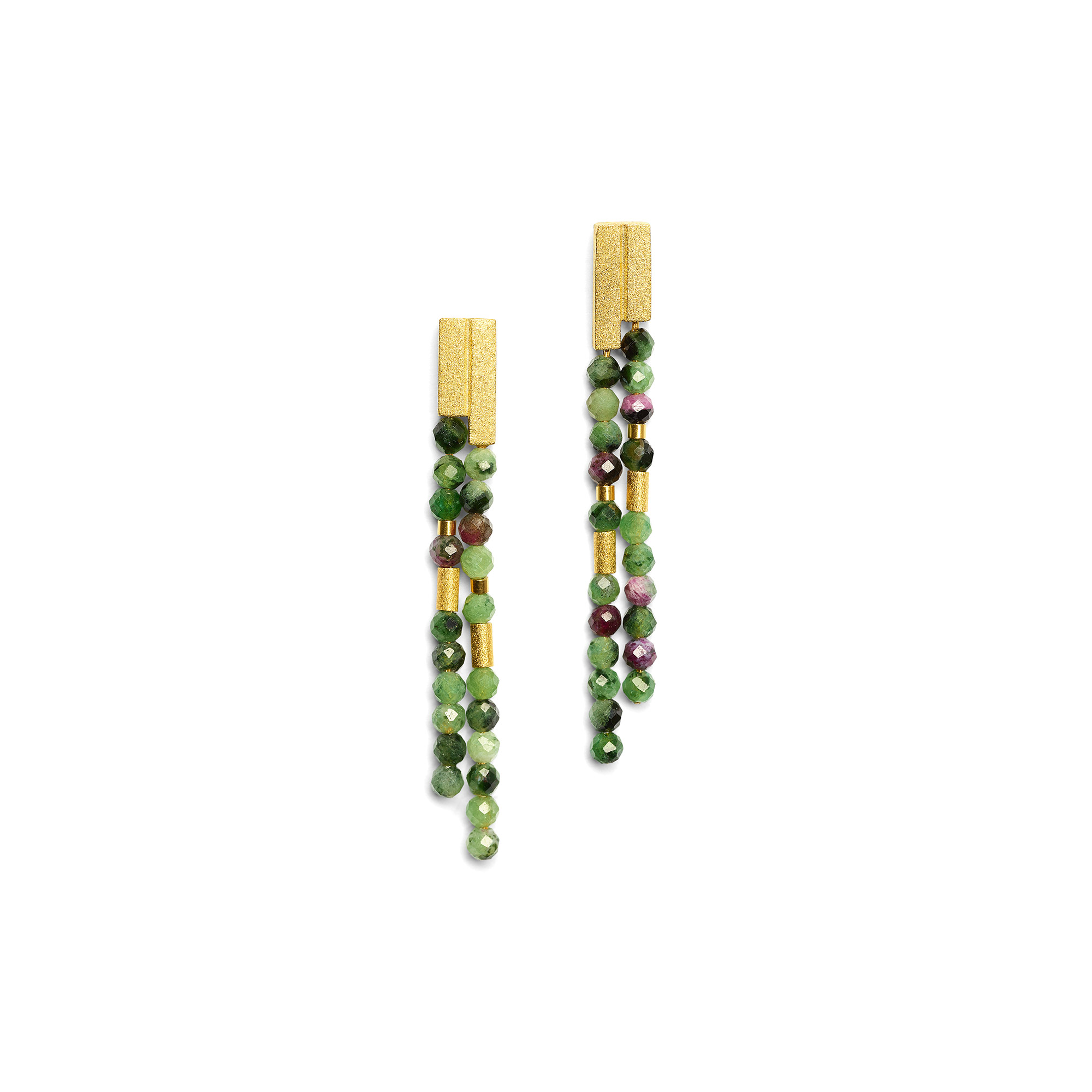 Der edle violettrot leuchtende Rubin in Verbindung mit seinem eleganten, grünen Muttergestein Zoisit lässt nicht nur die Herzen von Edelsteinliebhabern höher schlagen. Der seltene Edelstein, der auch den Namen Anyolith trägt, wurde bisher ausschließlich in Tansania gefunden. Weitere Infos zu den von BERND WOLF verwendeten Materialien im Lexikon der Edelsteine.